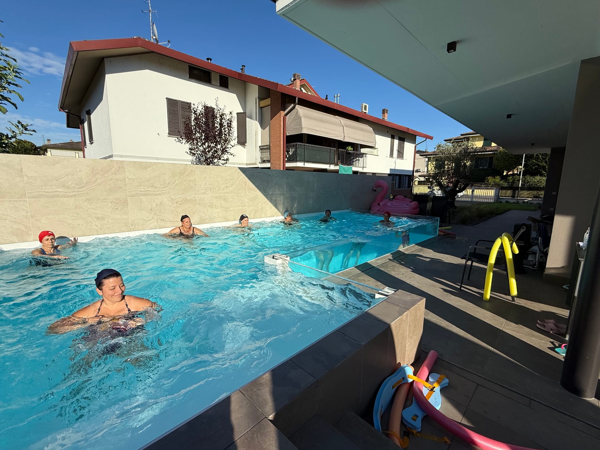 Durante le sessioni utilizziamo anche piccoli attrezzi galleggianti ed elastici, come tubi e noodle, che permettono di variare gli esercizi, aumentare la resistenza e coinvolgere in modo mirato gambe, glutei, braccia e addome. Il risultato è un allenamento completo, dinamico e divertente.